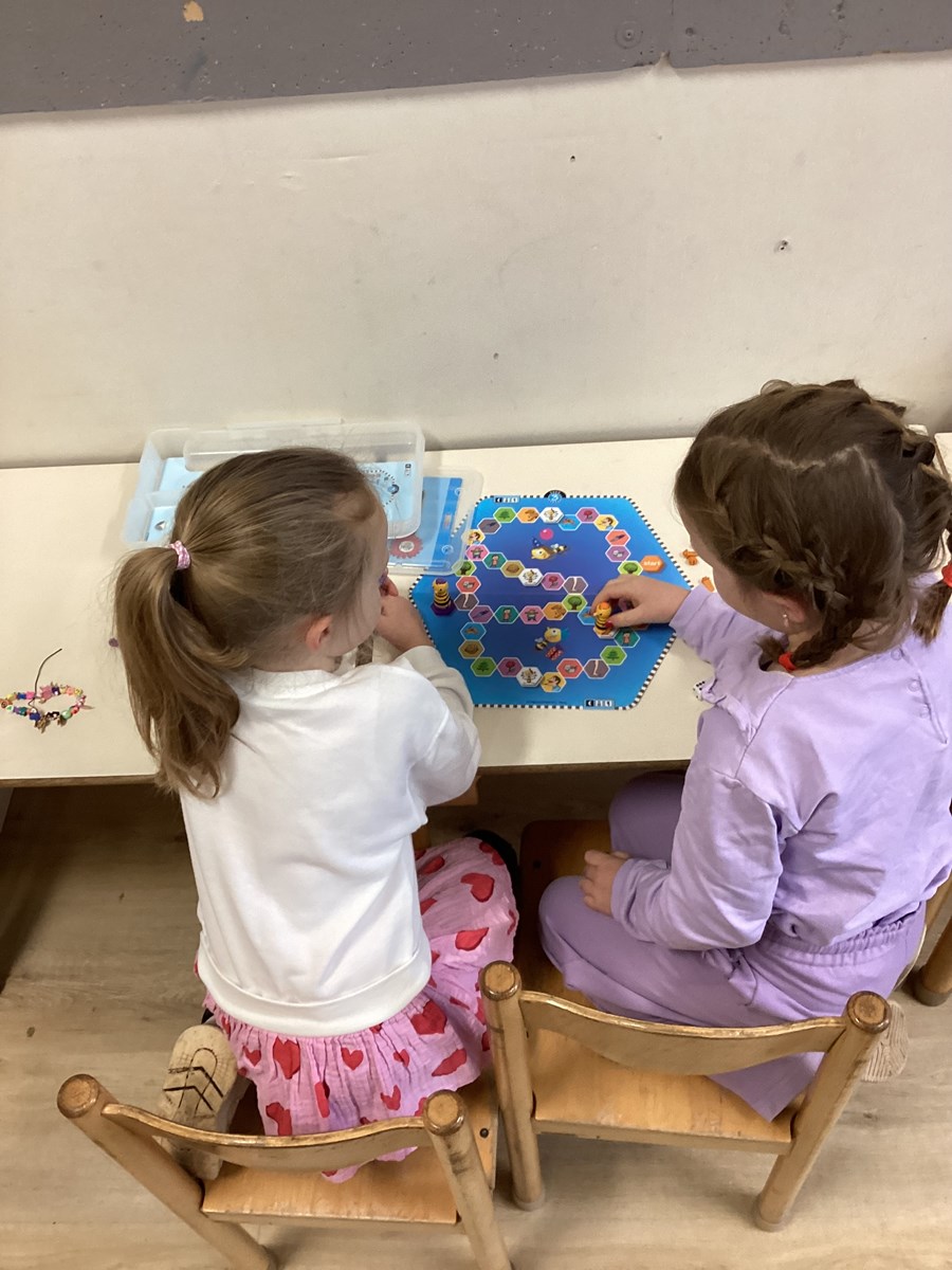 Foto 3: We spelen het spelletje “gok en hok” We moeten de getallen op de juiste plaats zetten.