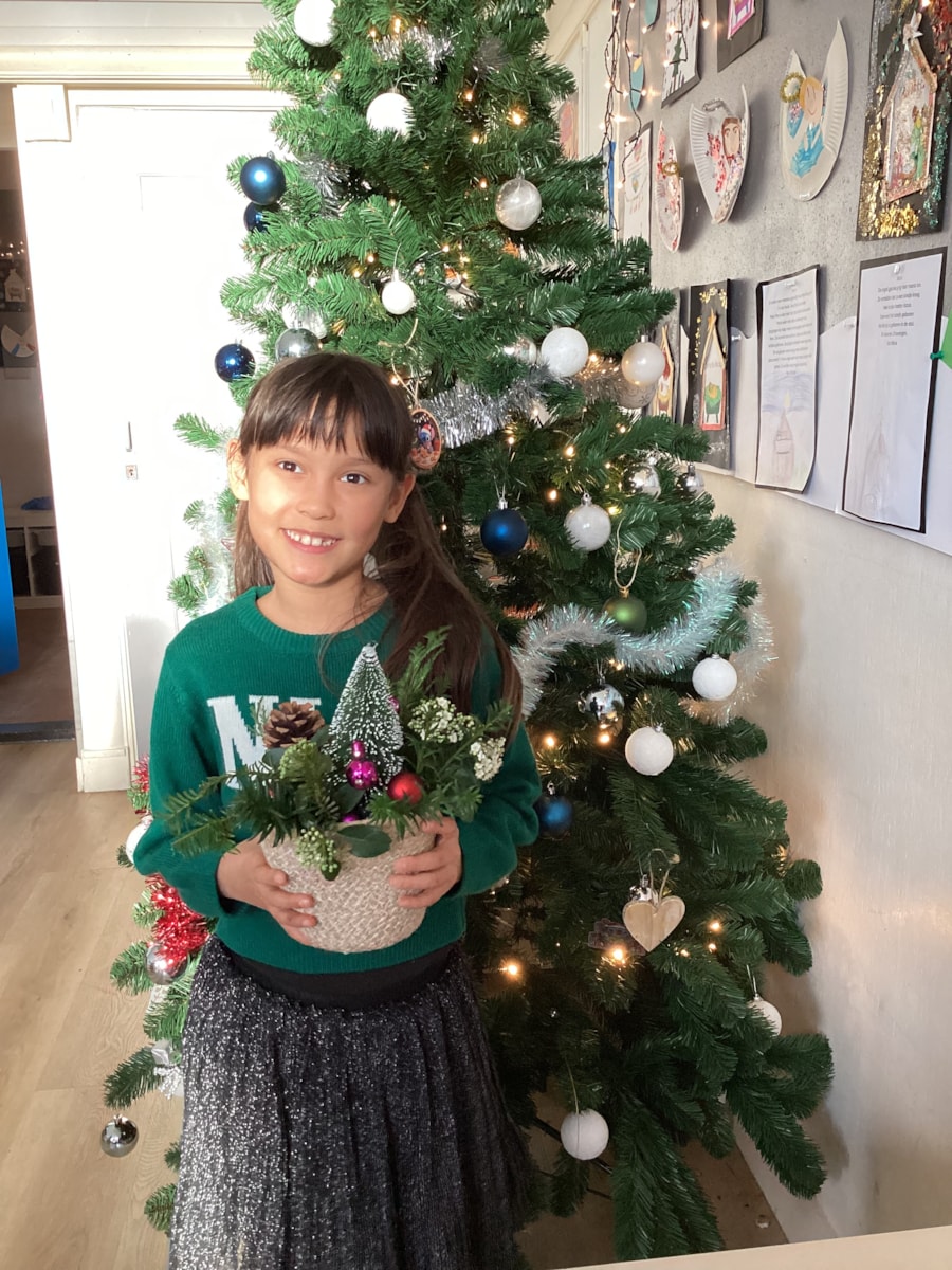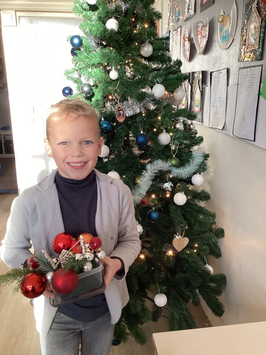 Daarna ging iedereen naar zijn eigen klas. Daar maakten de kinderen een kerststukje of een strokrans. Wat waren de kinderen goed bezig en wat zijn de knutsels mooi geworden.